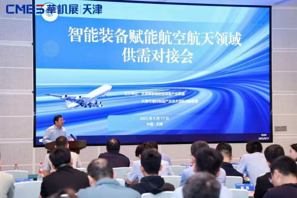 智能装备赋能航空航天领域供需对接会:由京津冀智能制造装备产业联盟张欢喜秘书长主持并做开场,天津市工信局总工程师蔡讴致辞,强调设备更新与技术升级对推动航空航天产业高质量发展的重要意义。