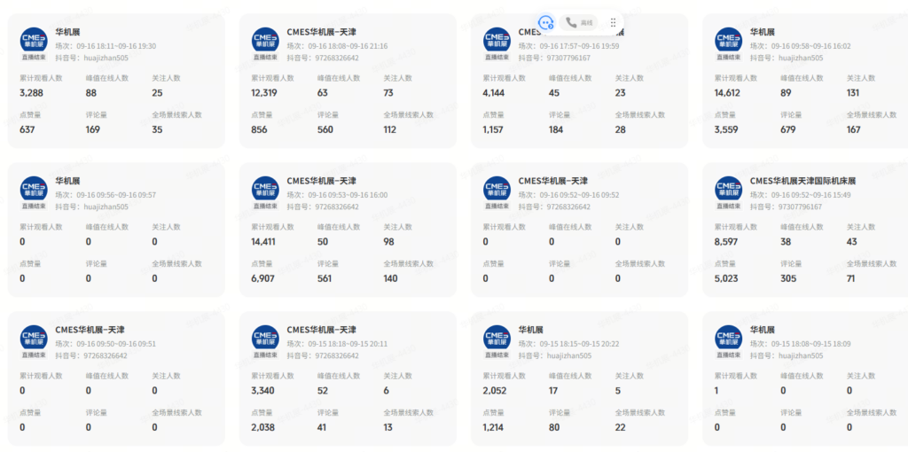 天津国际机床展在展前及展中同步设了4个线上直播分会。辈ナ背だ奂86小时,直播曝光人数238万、直播观看人数15万,有效实现了线上线下联动,彰显了华机展在推动O2O展媒融合、引领新会展模式方面的领航地位。